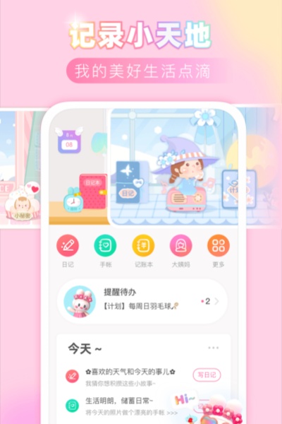 记手帐,写日记,记账便签备忘录,生理经期记录。贴心的记录助手,亲密的生活伙伴。热闹有爱的粉粉社区,交友聊天、兴趣话题讨论、分享情感的空间,期待您的加入。