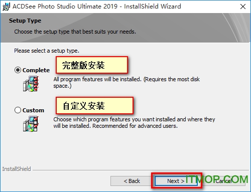 3、小编这里测试时选择的是“complete”完整安装;点击install安装