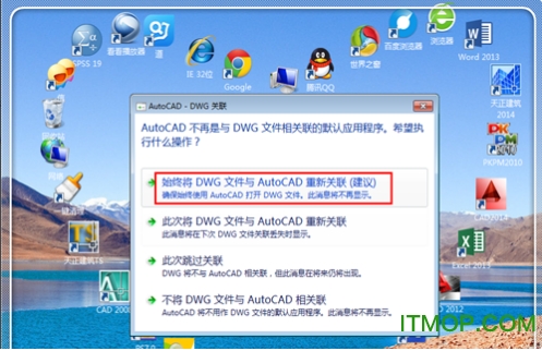 3、这时候可能会提示是否进行DWG文件的关联,点击第一个“始终将DWG文件与AutoCAD重新关联(建议)”。