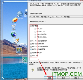 2、如果电脑上安装了其他版本的CAD,这时候会提醒你是否导入原来CAD的信息,如果想导入,直接点击“确定”,进入下一步,如果不想,将其前面的勾都去掉,然后点击“确定”进入下一步。