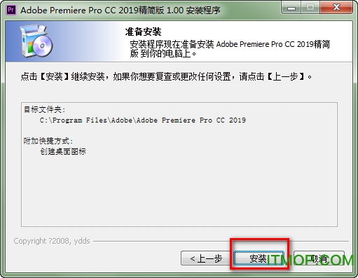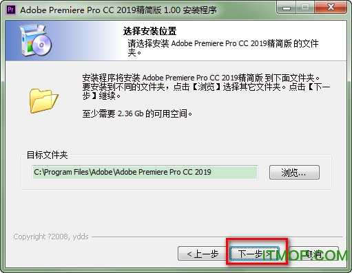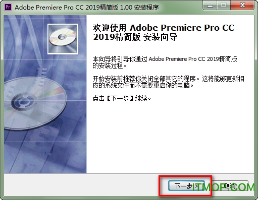 2、双击“Adobe Premiere Pro CC 2019精简版.exe”,开始安装;