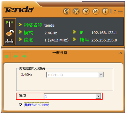 (2)、设置好SSID点击下一步“选择国家区域码是默认”,“信道”建议选择“1”“6”“11”。如下图所示: