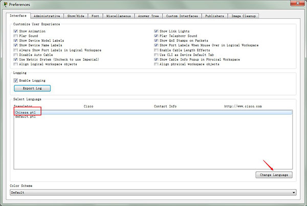11、在Interface界面中,选择Chinese.ptl,点击Change Language;