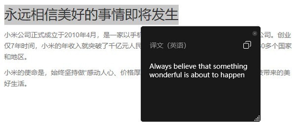 4、支持屏幕划词功能,在任意文本选择一段文字翻译。