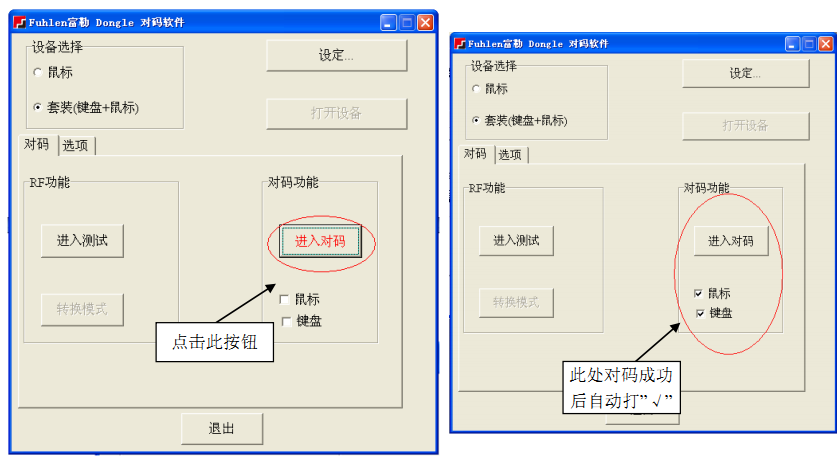 1、将接收器插到电脑上,打开如图一中的对码软件,弹出对码窗口