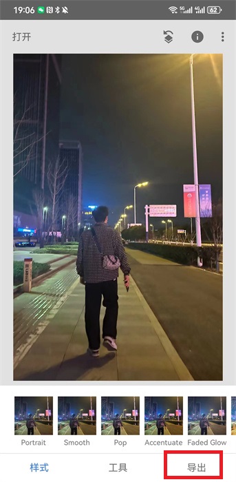 3、修图完成之后,我们可以点击右下角的【导出】;