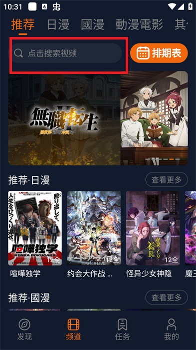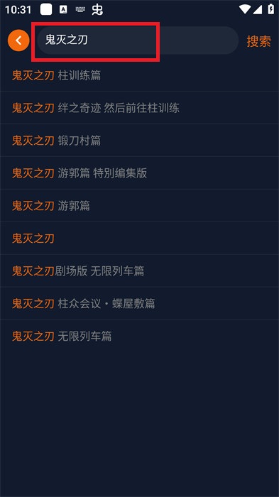 2、在搜索框中【输入想要搜索的动漫名字】比如鬼灭之刃,点击进行搜索;