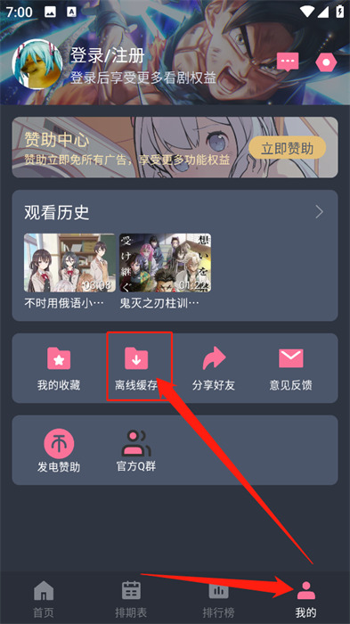 4、如果已经下载完成,可以返回首页,点击我的——离线缓存,这样就能在无信号的时候追漫啦!