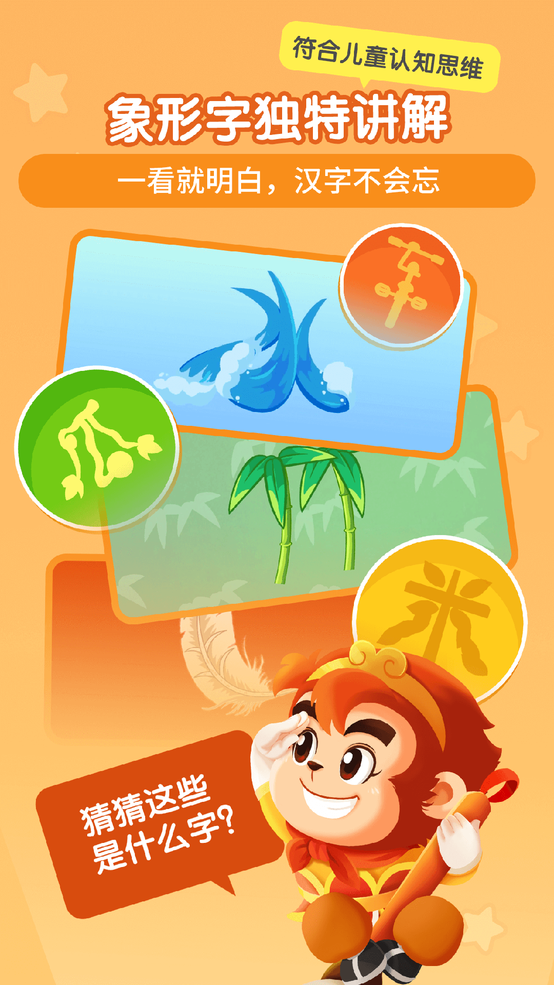 悟空识字是一款专门针对学龄前儿童打造的手机识字app,帮助小朋友们通过玩乐开心的方式学会汉子,提升孩子的学习效率,降低家长的教育负担。有需要的话就快来下载吧!
