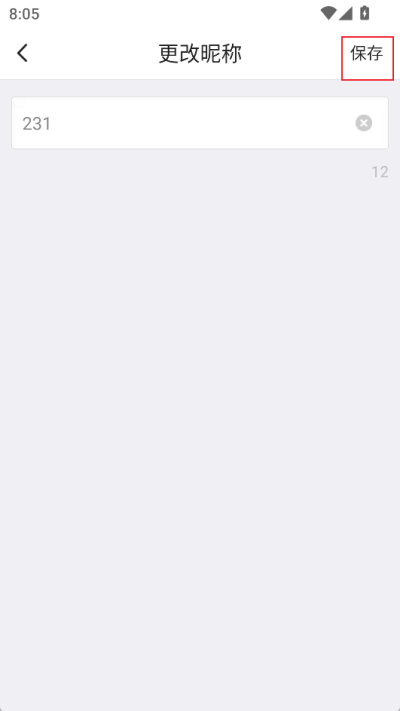 4、进入更改昵称后,输入新的名字,然后点击右上角的【保存】选项即可成功改名。