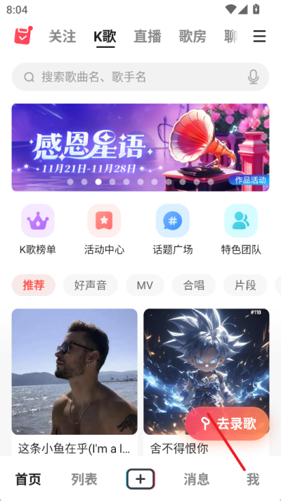 3.既可听歌又可录歌:vv音乐是一个全方位的音乐娱乐平台,您可以搜索到任何想听的歌曲,同时可以随时随地录歌录MV。