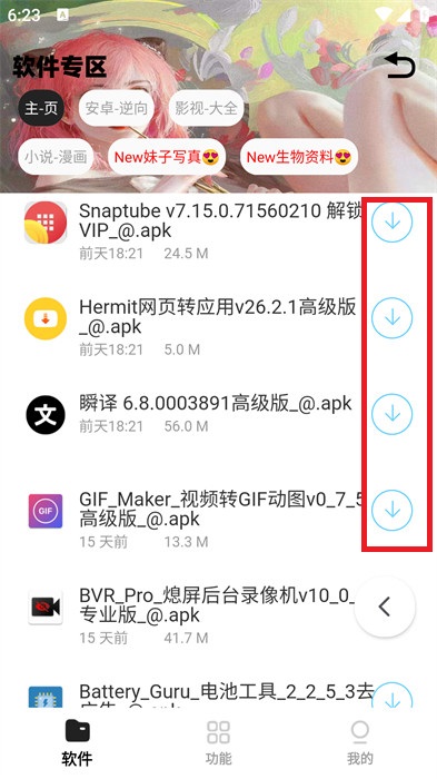 2、也可以直接拖动向下查看文件,会有非常多的软件在列表中,可以随意的点击右边的下载;