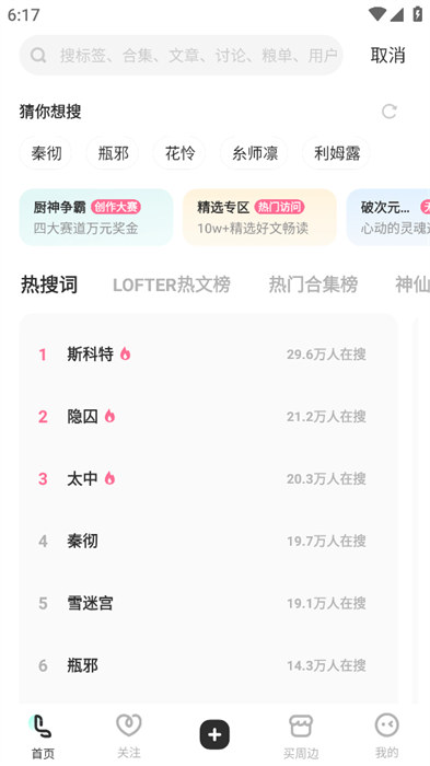 3、用户们可以在搜索框里面输入自己想要搜索的文章等内容;