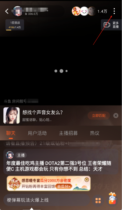 2、进入直播间后,点击直播界面右上角的更多选项;