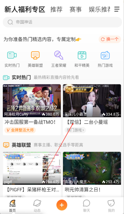 1、首先打开下载好的斗鱼直播APP,进入软件后随便点击一个直播间进入;