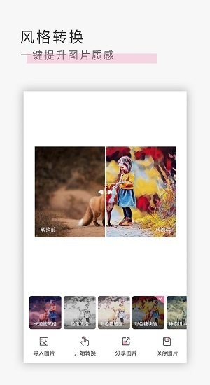 1、操作简单,可以一键变化,让照片更加的丰富多彩。
