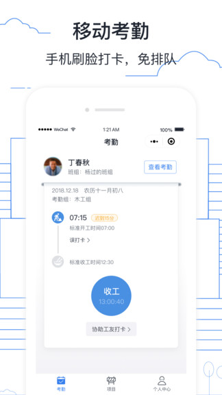 墨计考勤APP是墨斗科技为助力建筑行业全面实行实名制考勤而开发的系统。实时定位员工,随时查看工作轨迹、工作区域,工作时间等。此客户端为考勤端,主要提供给建筑工地上的班组长和建筑工人使用,班组长可以在客户端管理工人考勤和人员工资,工人可以在上面进行实名认证、考勤、工资单核对等操作。
