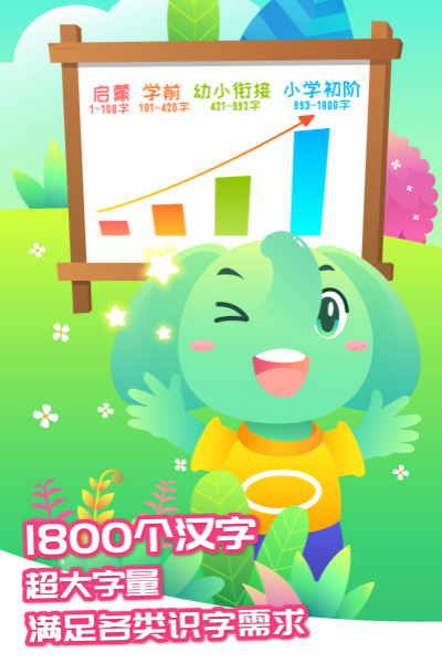 3、1800部汉字动画,采用千字岛阶梯想象识字法,音形义高度统一,识字更高效。