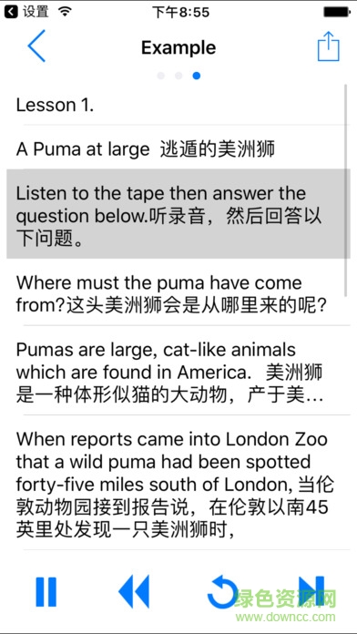 实现以句子为单位练习外语听力,可以重复地听一句话,专治您的听不懂;