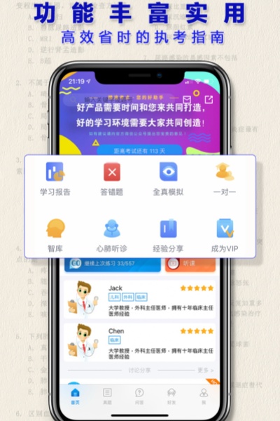 执业药师app是为医学行业人士提供了海量题库,涵盖集最新热考试题、仿真试题、强化练习题、模拟试题、考前冲刺、历年真题等。并且支持模拟考试,学员们可以在线练习试题,模拟测试等。助你轻松备战执业药师考试。