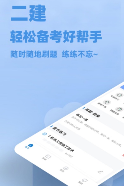 二建练题狗是二级建造师考生考试用专用题库和备考顾问工具,是一款基于手机端的APP软件,其主要功能是在移动设备上实现科目练习和模拟考试。软件运用先进的智能分析算法、依托国内最优质的专业题库和良好的用户互动体验,能真正提升考生成绩,大幅提高考证过关率,是考证系必备掌上过关法宝!