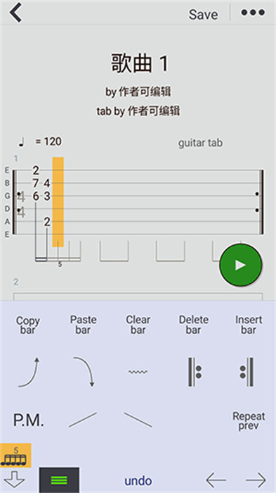 4、专用曲谱的文件格式可读和可写,全屏吉他谱子阅读和编辑。