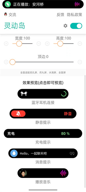 5、通过自定义参数,来修改灵动岛在顶部通知栏的位置,还有透明度、大小等参数可以设置。