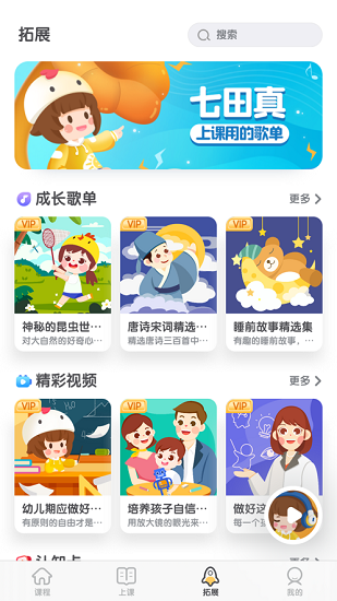 提供了丰富有趣的智力开发音视频资源,包括睡前故事、经典儿歌、童谣故事、国学、儿童英语、胎教音乐等上万首高质量音频。同时也为家长们提供了各种实用新潮的育儿内容,通过家长课堂、七田真专家直播、日本妈妈育儿视频、育儿电台等,时刻向爸爸妈妈们分享海内外新的育儿观点知识。