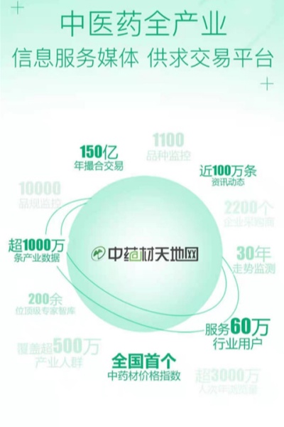 中药材天地网app是一款专注于中药材行业的软件,通过中药材天地网app你可以了解到更多行业资讯和相关信息,同时享受更多服务。