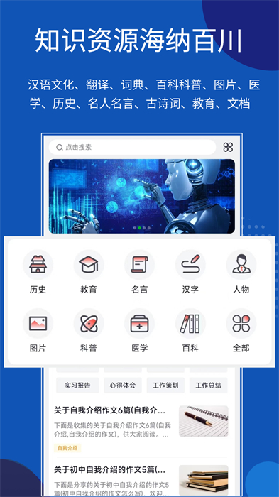 贝壳搜索app为用户提供知识百科、名人名言、医学健康、科普技术等功能服务,是一款非常好用功能强大的资源搜索在线学习软件,贝壳搜索app支持在线双语翻译,知识问答百科,海量资源随便搜索,方便用户随时通过贝壳搜索app找到自己想要的各种学习资料。