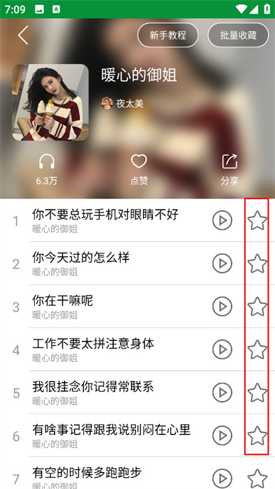 3、接着,在软件内挑选自己喜欢的语音包,并点击收藏,这样在其他页面有了悬浮窗就能播放了;