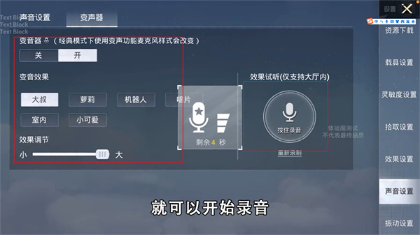 5、在游戏内将麦克风都打开,并且可以适当关闭背景音乐,可以直接点击悬浮窗当中的语音包进行沟通。