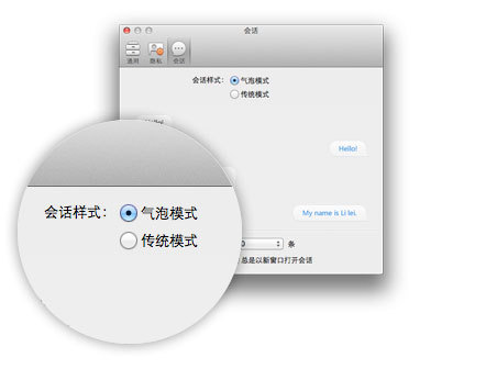 设计风格保留个性的同时,追求与 Mac 风格一致化,用户可以自定义气泡模式,让对话更加真实。同时去掉不必要的内容,保持功能多样化特性,尊重传统与追求创新用心呈现。