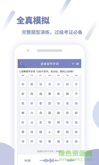 众多用户口碑推荐产品,普通话等级考试一站通关神器!畅言普通话app,为准备参加全国普通话水平测试考试的用户服务。无论你是想要考取教师资格证,还是想从事播音主持、配音表演、销售导游等与声音密切有关的职业,都需要有相应的普通话等级证书和一口流利标准的普通话。普通话考试,普通话学习与测试的随身软件,巩固普通话基础,纠正方言,汇集普通话考试真题题库。2022年一起考教师,通过普通话二级甲等、一级乙等就是这么简单,还能学习汉字、汉语、语文等,说一口流利普通话!