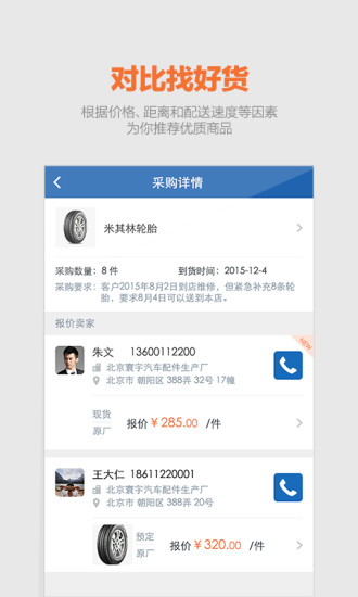 通过简单几步即可发布配件采购单,精准推送买家卖家,轻松等待卖家报价。