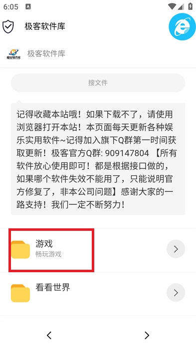 2、比如进入到【游戏】文件夹就可以看到非常多的游戏,有些是手机软件商店中没有的安装包;