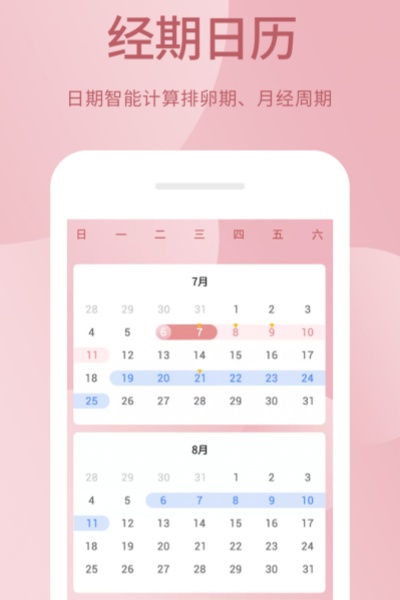这是一款月经期助手及备孕应用,方便女性计算排卵期、大姨妈、经期、安全期
