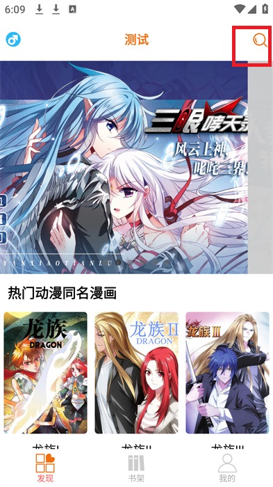 1、首先我们需要进入到软件中,点击上方的【放大镜】点击进入到搜索界面之中;