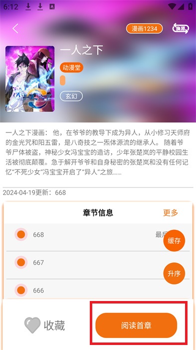 4、再详情界面中,点击右下角的【阅读首章】就可以去进行阅读。