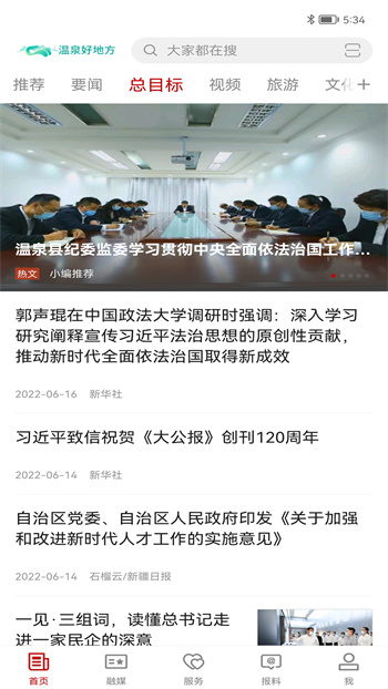 温泉好地方APP是一款以地方新闻、信息、咨询为主的政府宣传应用软件,主要展示温泉县的时政信息、旅游咨询、新闻、视频和文化内涵,是政府部门的信息发布和宣传的平台。应用内有推荐、要闻、总目标、视频、旅游、文化等6个栏目版块,内容每日更新,让使用此APP的用户及时掌握和了解到温泉县正在发生的大事小事,深入的了解温泉县的文化内涵和民俗特色、旅游咨询。该应用不含广告内容。