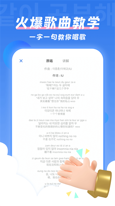IU、李孝利、iKON……韩语热门歌曲教学,说韩语,唱韩语一样了得。