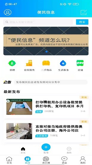 - 点击街市按钮,就可以快速的查看各种便民信息
