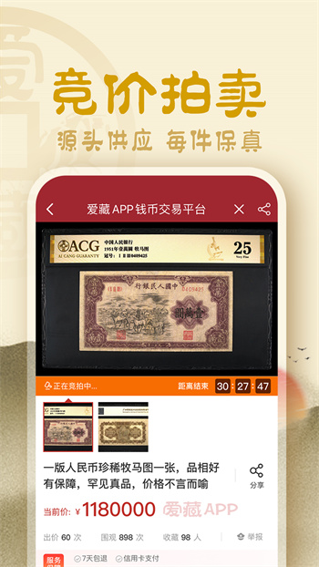 爱藏网移动拍卖平台,每日上新行业精品好货,0元起拍,欢迎捡漏,更有近百名专家在线鉴定,登录获取更多信息,分享收藏投资乐趣!