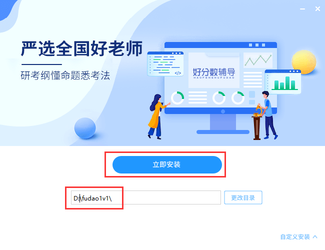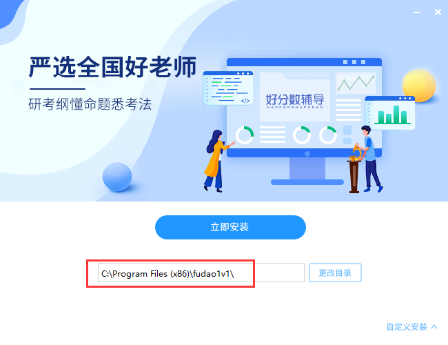 1、在本页面下载好分数辅导1v1,并解压文件夹,双击文件“fudao1v1_setup.exe”开始安装,界面如下图所示: