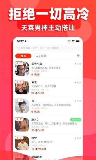 3、陪玩系统:这里的男神不再高冷,想和谁玩和谁玩。
