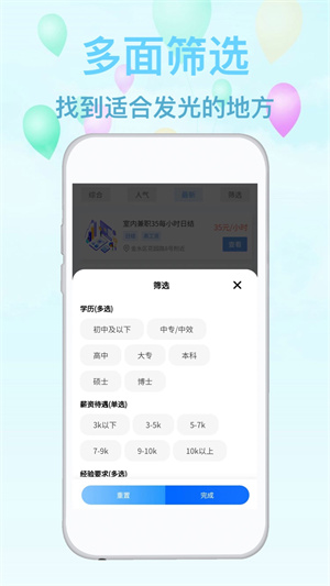 3、提供给你全面的筛选,多个条件选择,适合你的就是好工作。