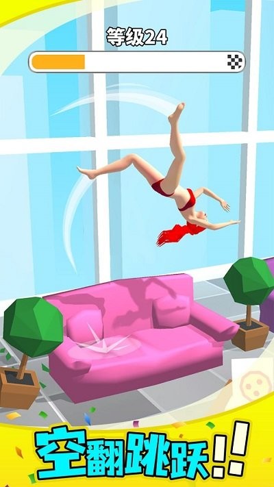 人体空翻手机版是一款玩法设定别样化的休闲类闯关游戏,整个游戏采用更加精致的3d画风设计,在游玩的过程中,玩家必须根据角色的形象来选择不同的跳跃方式,不断帮助其完成跳跃任务,看似比较简单的跳跃任务,实际上在游戏内是一个非常高难度的动作,在游玩的过程中,玩家只需要点击屏幕即可控制自己的角色跳跃,在特殊目标上完成着陆和炫酷的杂技,空翻动作都可获取相应的分数,只有达到指定的分数才可获取整个关卡的胜利。
