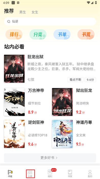 1、点击屏幕之中的【分类】按钮,以进行小说的选择;