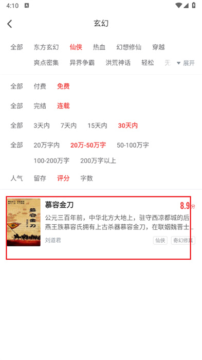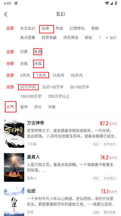 3、筛选完毕之后,可以进行更详细信息的筛选,以顺利的找到自己想要看的小说;