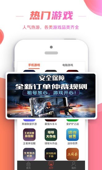 2、将平台上的游戏进行有效的分类,用户可以选择喜欢的游戏进行租号。
